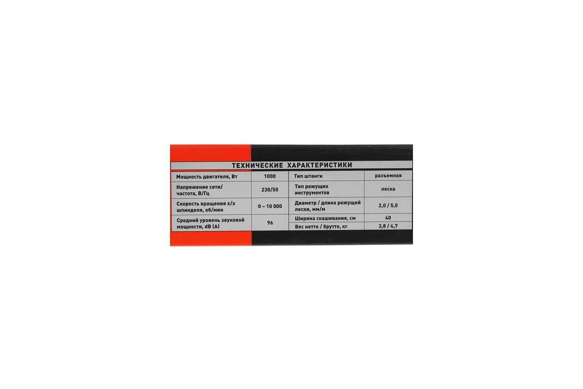 | Особенности | полуавтоматическая катушка; разборная штанга; функция плавного пуска; питание от сети переменного тока напряжением 230 В, частотой 50 Гц; ударопрочный корпус; защита от случайного включения |