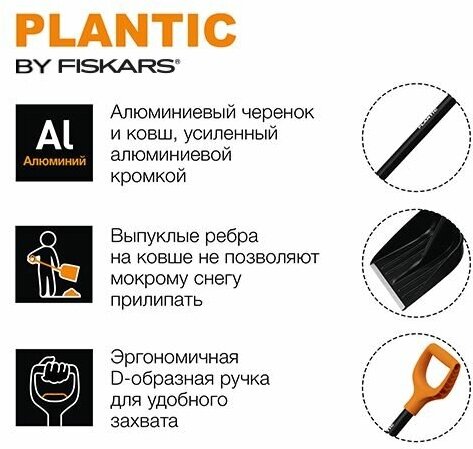 | Дополнительная информация | Эргономичная D-образная ручка для удобного захвата, Выпуклые ребра на ковше не позволяют мокрому снегу прилипать |