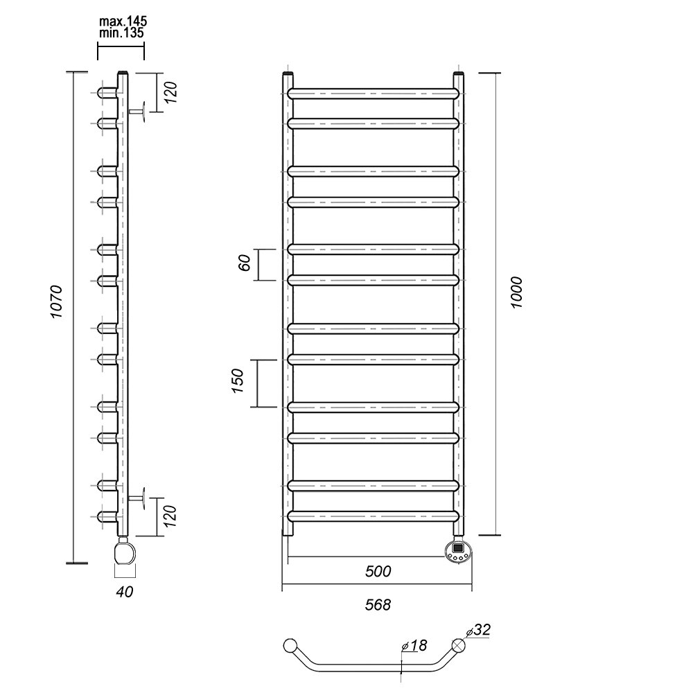 | Дополнительная информация | Комплектация полотенцесушитель, крепления, световой индикатор, электрический кабель, нагревательный тэн |
