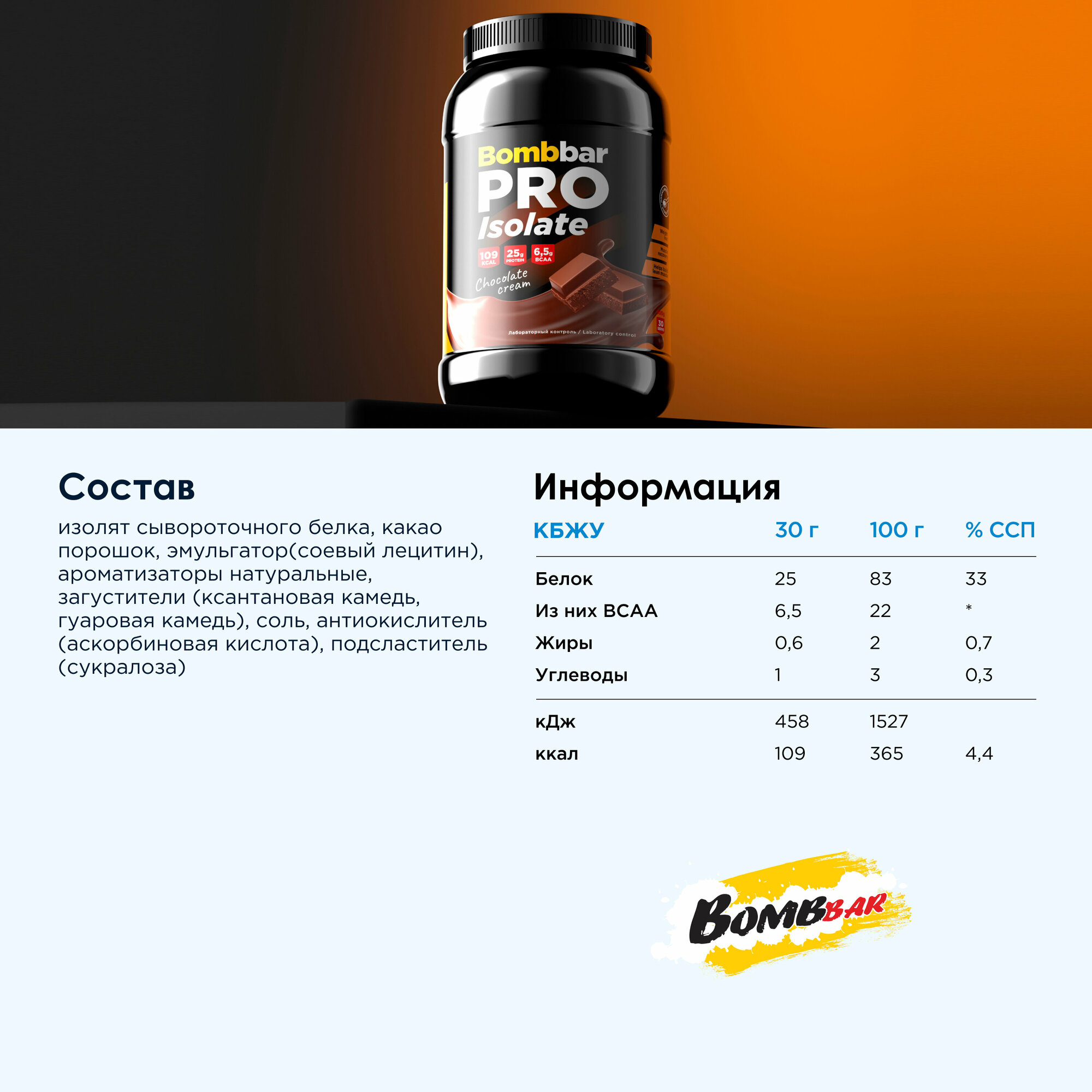 Bombbar Pro Isolate (900 гр) (шоколадно-сливочный)