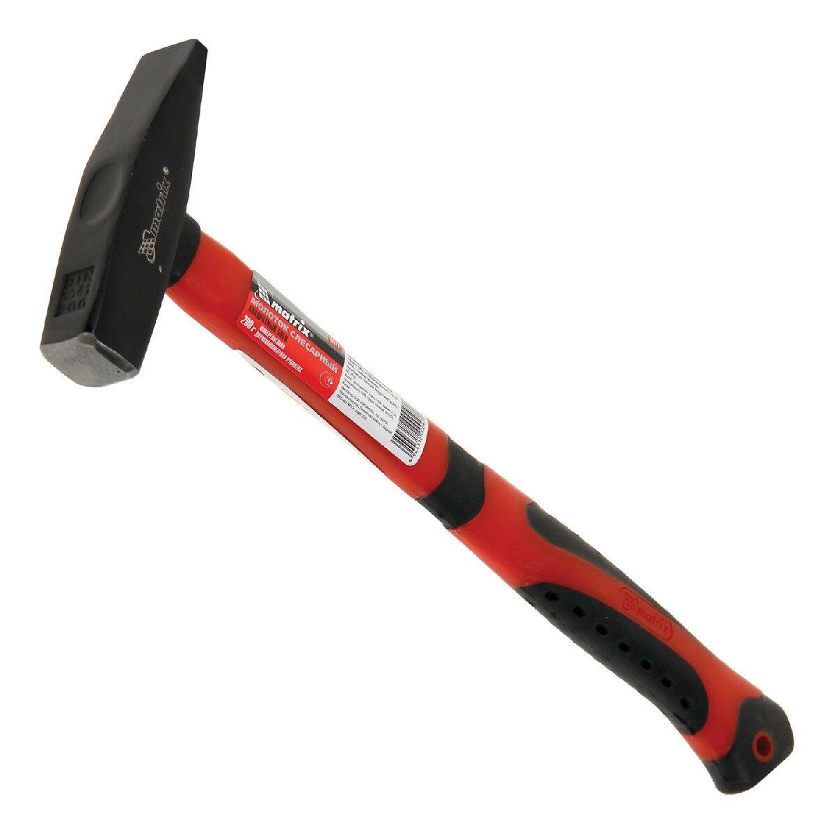 Молоток слесарный Matrix, фиберглассовая обрезиненная рукоятка, 200 г