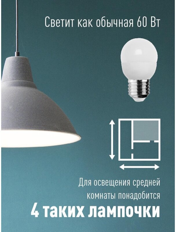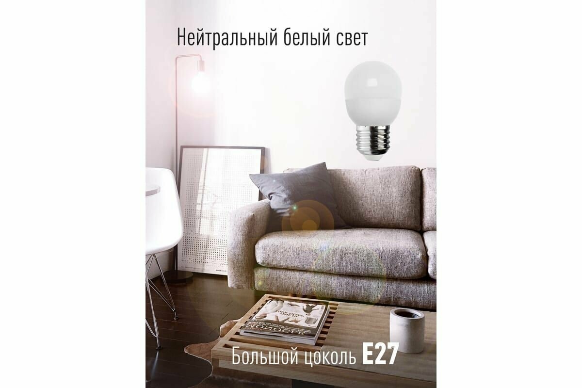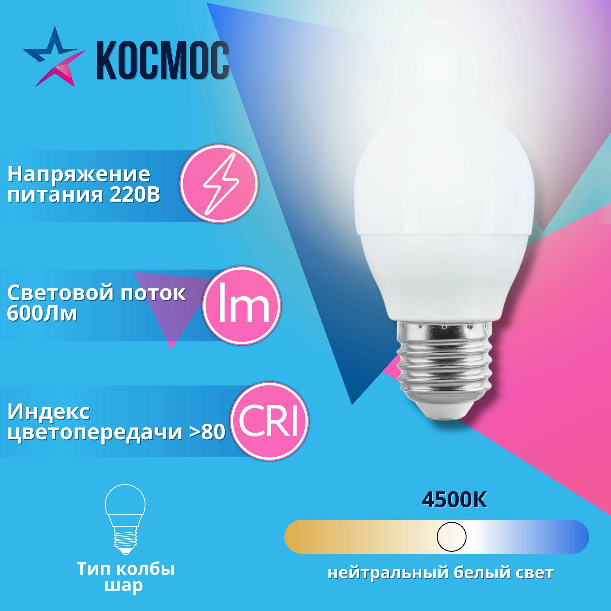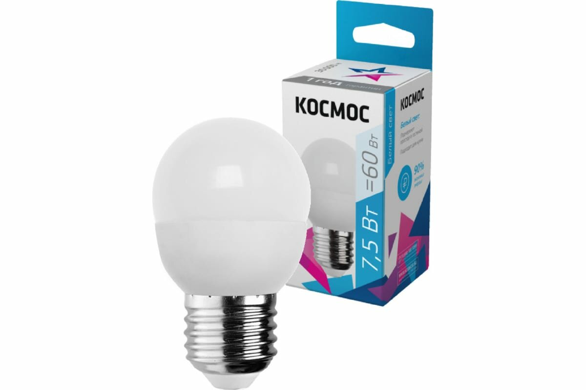 Светодиодная лампа Космос, 7.5 Вт, E27, 4500 K, шар, LED7.5wGL45E2745, нейтральный белый