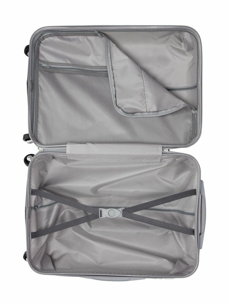 Чемодан на колесах дорожный средний багаж для путешествий m TEVIN размер М 64 см 62 л легкий 3.2 кг прочный abs (абс) пластик Серое серебро