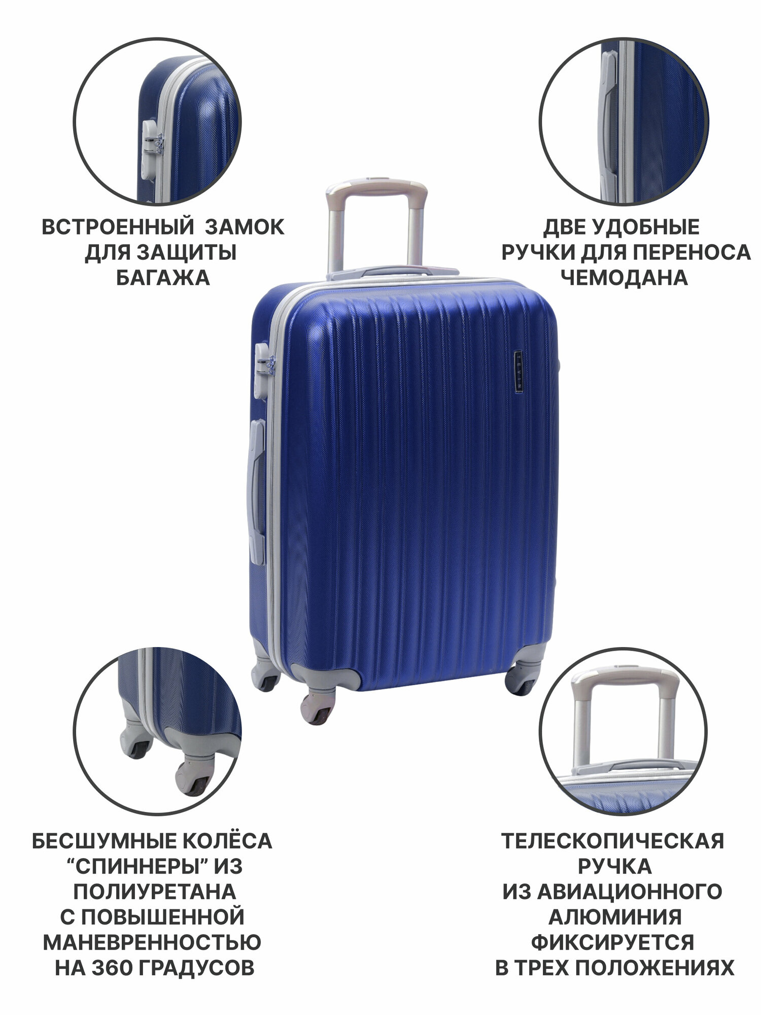 Чемодан на колесах дорожный средний багаж для путешествий m TEVIN размер М 64 см 62 л легкий 3.2 кг прочный abs (абс) темно-синий