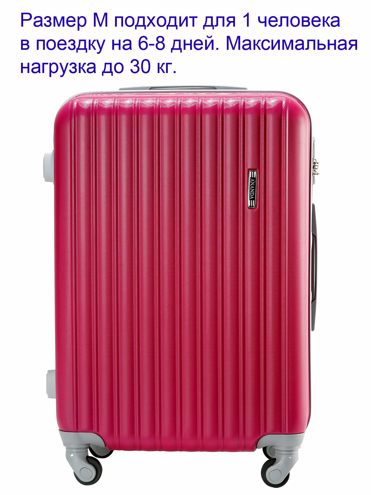 Чемодан на колесах ANANDA, средний размер М, 63 см, 60 л, розовый