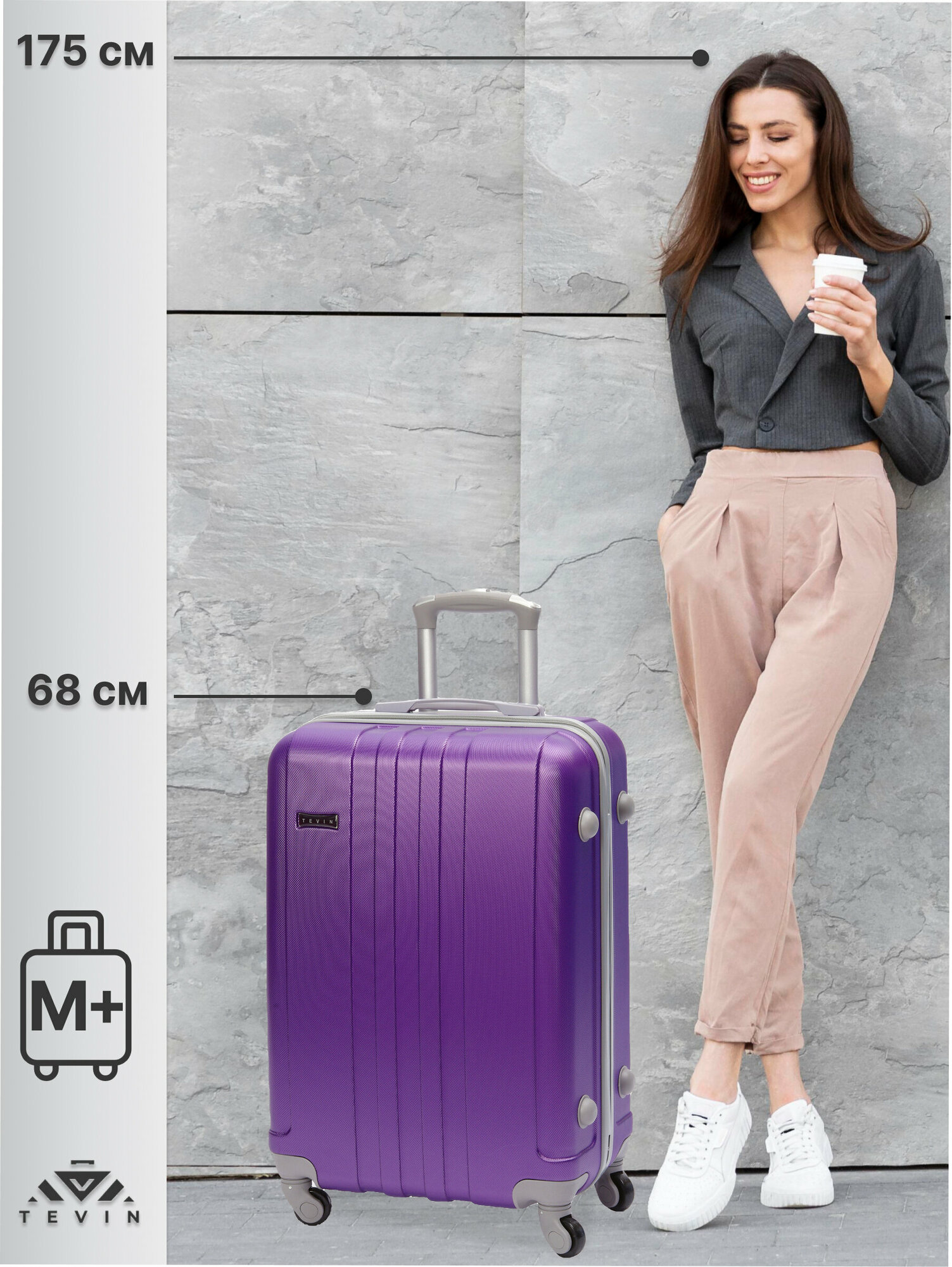 Чемодан на колесах дорожный средний багаж на двоих для путешествий женский m+ TEVIN размер М+ 68 см 77 л легкий 3.7 кг прочный abs пластик Фиолетовый