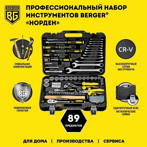 Универсальный набор инструментов BERGER 89 предметов ?” - ?” «Норден» BG089-1214