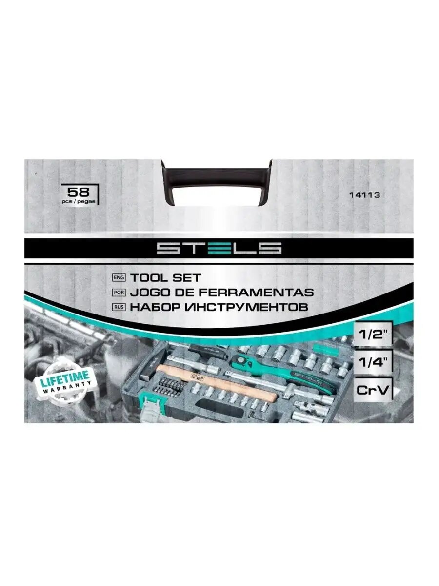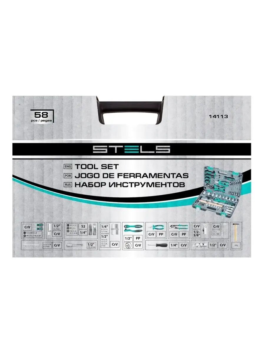 Набор инструментов STELS EQUIPMENT STELS 14113, 1/2", Cr-V, S2, усиленный кейс, 58 предметов