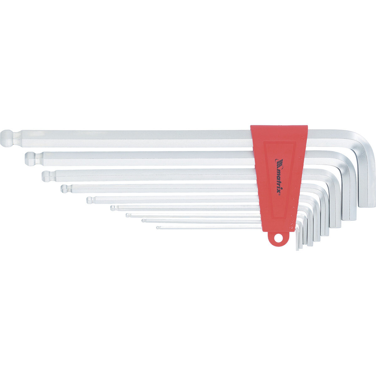 Набор ключей имбусовых Matrix HEX 2–12 мм, CrV, 9 шт, экстра-длинные, c шаром, сатин. 16411