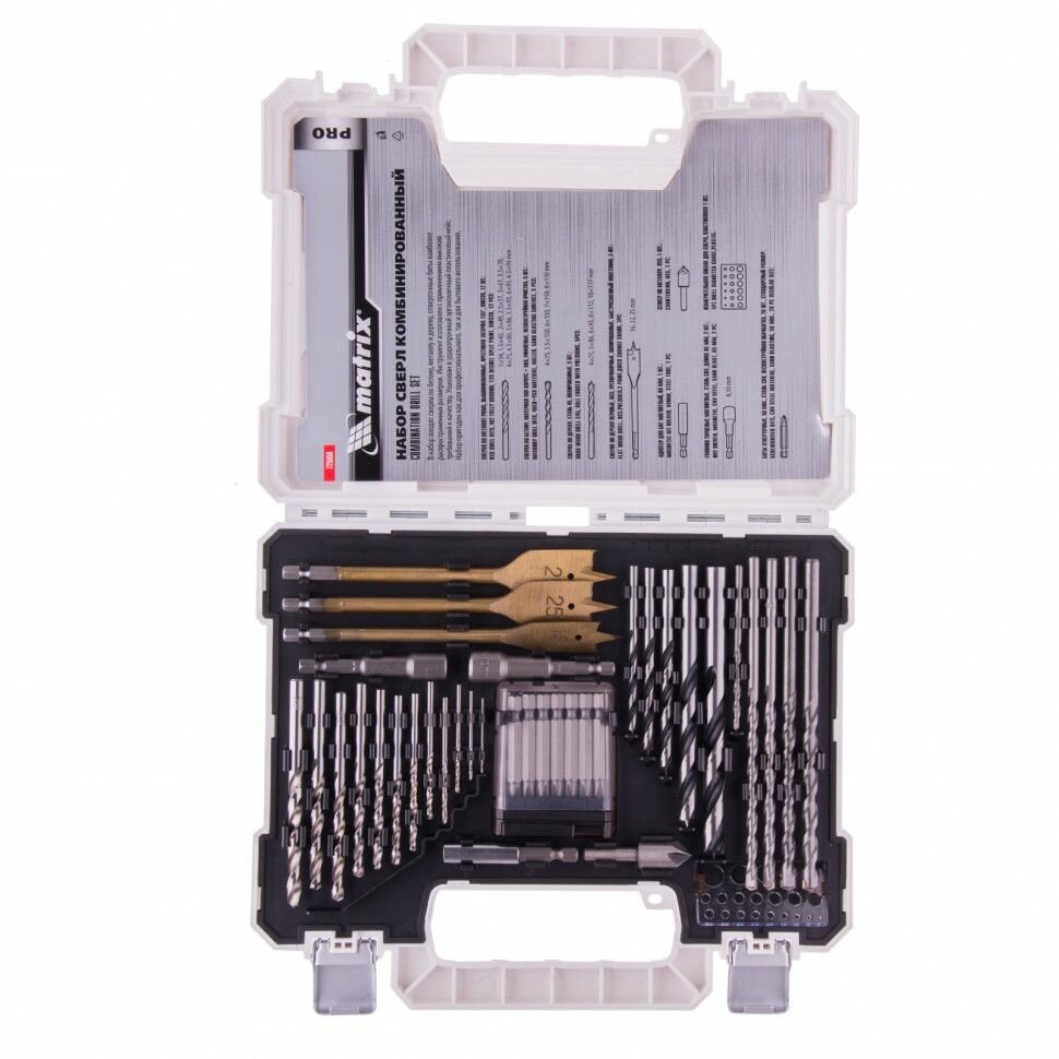 Купить Набор сверл комб.,мет.1-6,5мм,бет.4-8мм,дер.4-10мм,перк, бит.20шт,адап,гол.2шт,зенк,50пр. Matrix