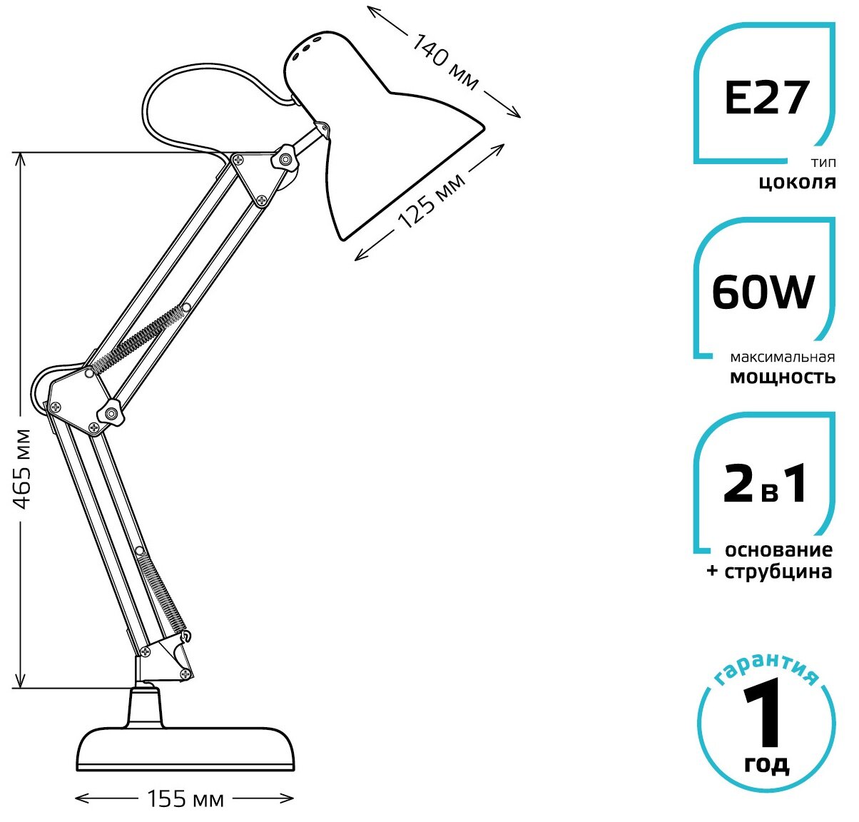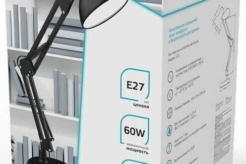 Настольная лампа GAUSS GTL002 60W 220-240V E27 черный струбцина и основание 1/12
