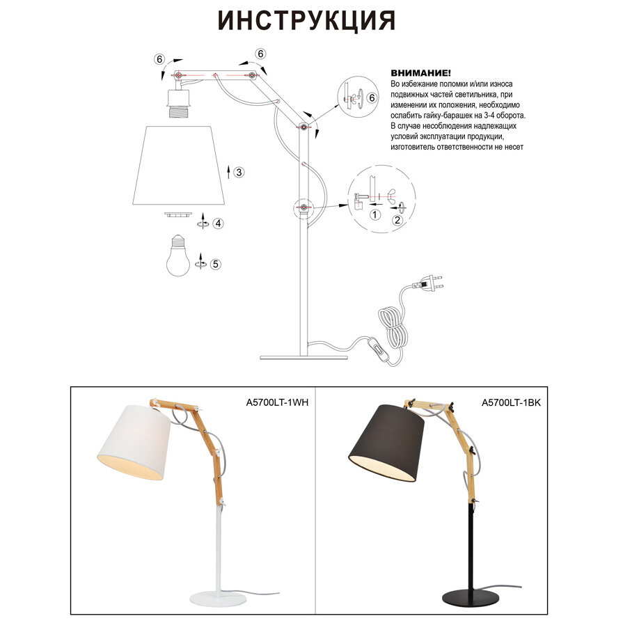Декоративная настольная лампа Arte Lamp A5700LT-1WH PINOCCHIO под лампу 1xE27 60W
