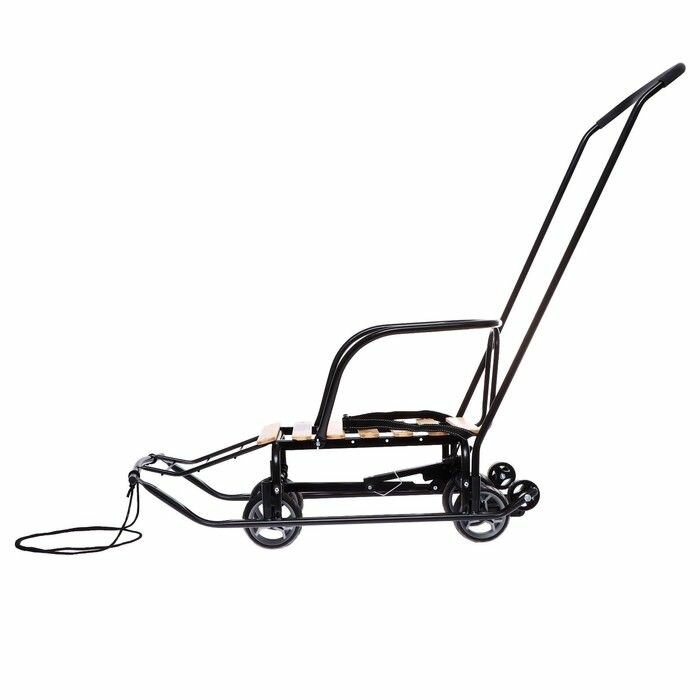 | Плюсы: | Хорошие, удобные сани, ручка переставляется, можно за веревку везти |