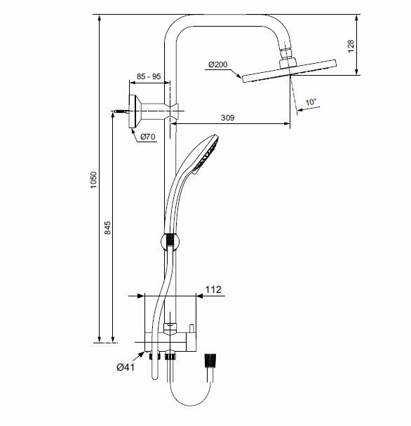 | Дополнительная информация | высота стойки для душа: 1050 мм; диаметр душевой лейки: 80 мм; диаметр верхнего душа: 200 мм |