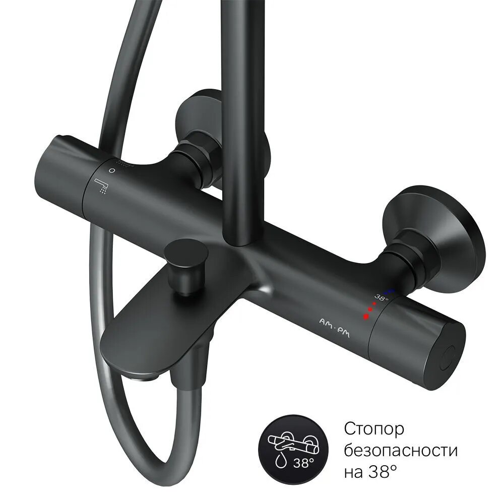 Душевая система AM.PM Like F0780522 с термостатом Черная матовая