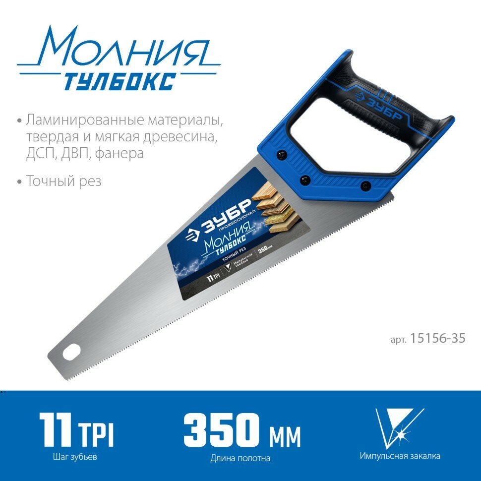Купить Зубр Ножовка компактная пила "молния-тулбокс" 350 мм, 11 TPI, прямой зуб, точный рез, импульсная заалка каждого зуба, 15156-35_z01