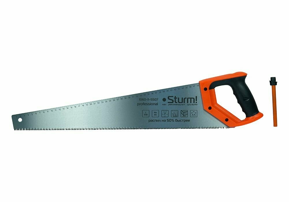 Ножовка по дереву STURM! С карандашом,550мм,7-8 зуб.на дюйм,каленый 3D ЗУБ,, 1060-11-5507