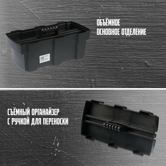 Ящик для инструмента тундра, 22", 565 х 325 х 290 мм, пластиковый, лоток, два органайзера