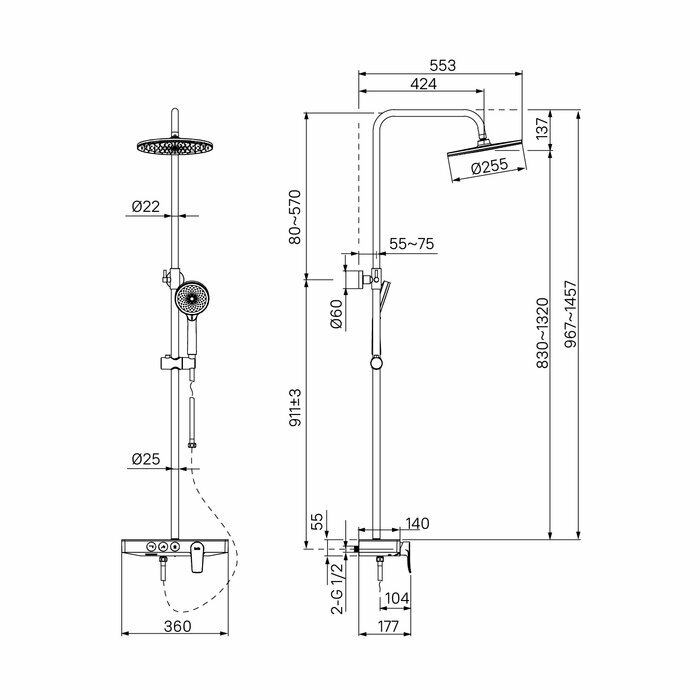 | Комплектация | душевая стойка - 1 шт. / верхний душ - 1 шт. / душевая лейка - 1 шт. / держатель для душа - 1 шт. / душевой шланг - 1 шт. / смеситель - 1 шт. / инструкция - 1 шт. |