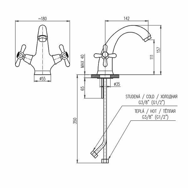 MK128.5 MORAVA RETRO - смеситель классический для умывальника RAV Slezak