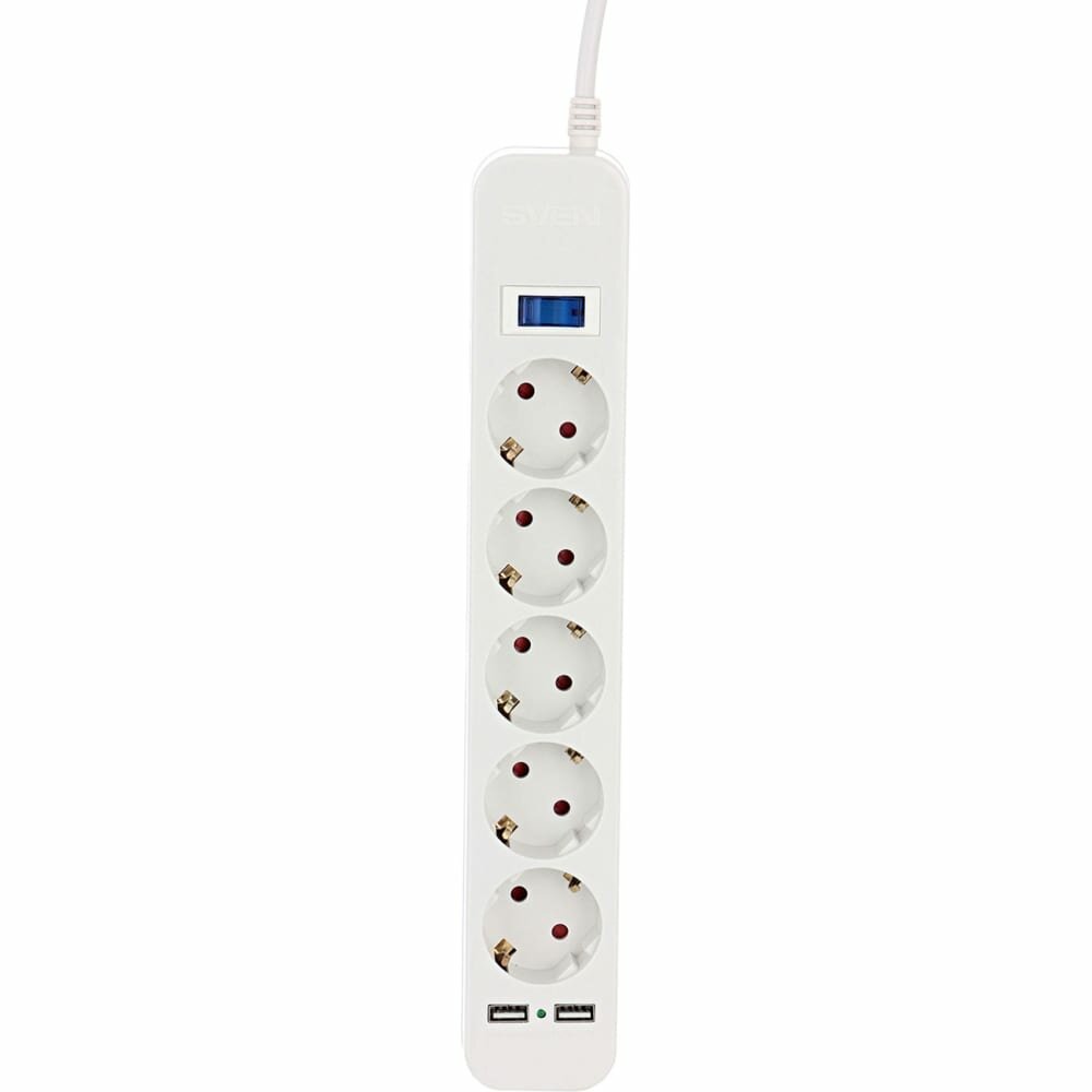 Sven Sf-05lu 3,0 м (5 евро розеток,2 Usb) белый, цветная коробка .