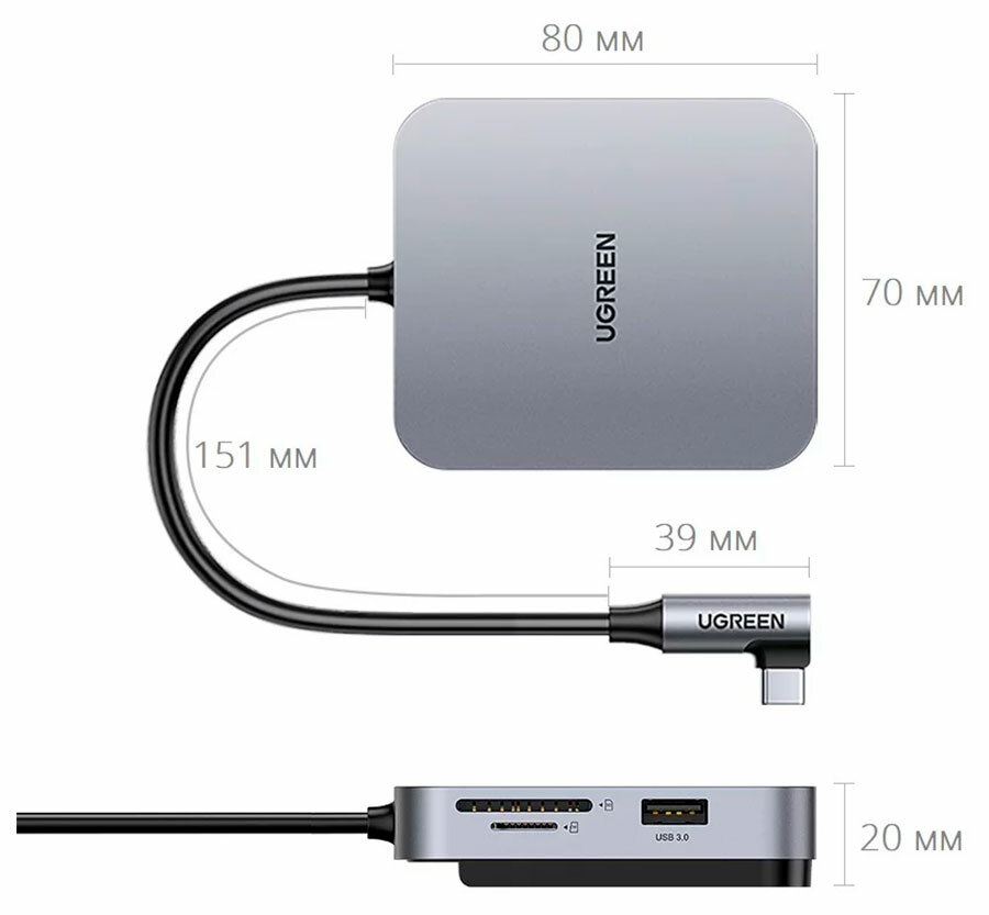 USB-концентратор для Mac (хаб) Ugreen 3 x USB-A 3.0, SD/TF (60377) интересное: