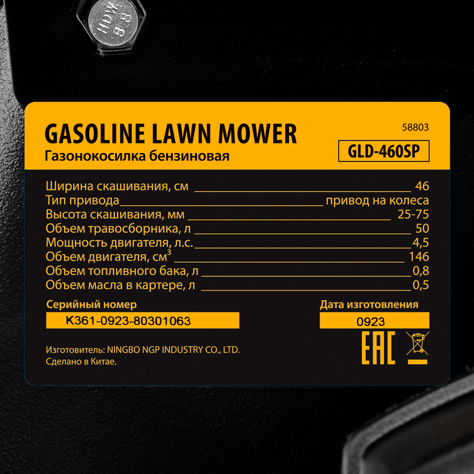СохранитьГазонокосилка бензиновая GLD-460SP, 146 куб.см, ширина 46 см, привод 7 уровней, травосборник 50 л Denzel интересное: