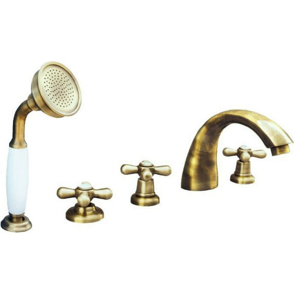 Rav Slezak Morava Retro Смеситель для ванны на 4 отверстия переключатель керамический MD0448.5 душевой шланг с пружиной 2м цвет бронза (MK169.5PSM)