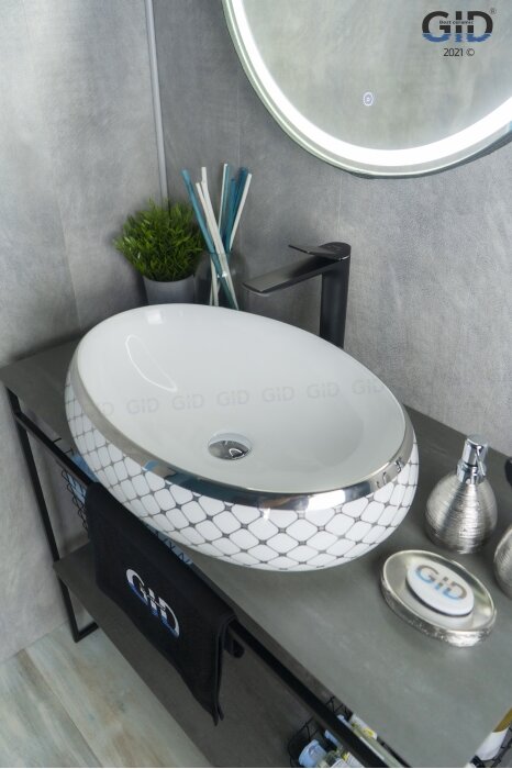 Раковина Gid Color Edition Nc262 59x40x16 см накладная белый с серебряным