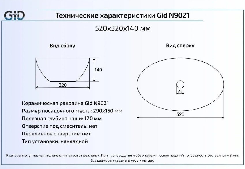 GID Раковина накладная Gid Wm9021