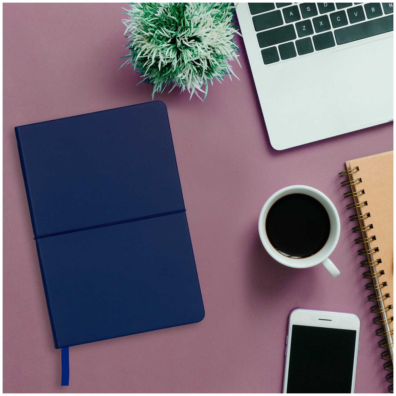Блокнот А5 148x218мм, BRAUBERG Metropolis X, под кожу, 80л, резинка, клетка, темно-синий, 111031