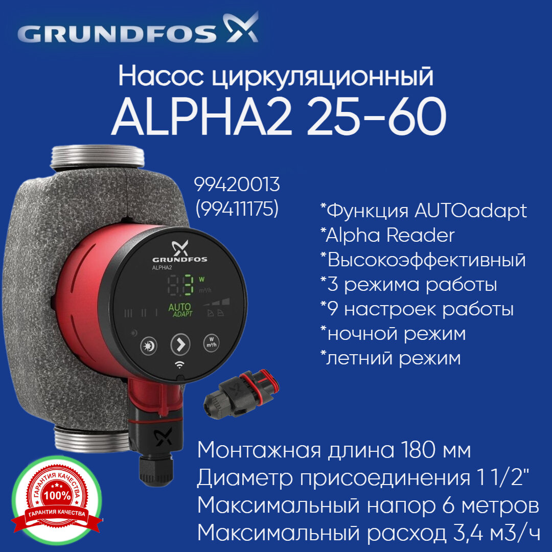 99420013 (99411175) Циркуляционный насос Grundfos ALPHA2 25-60 180 (модель D) (34 Вт)