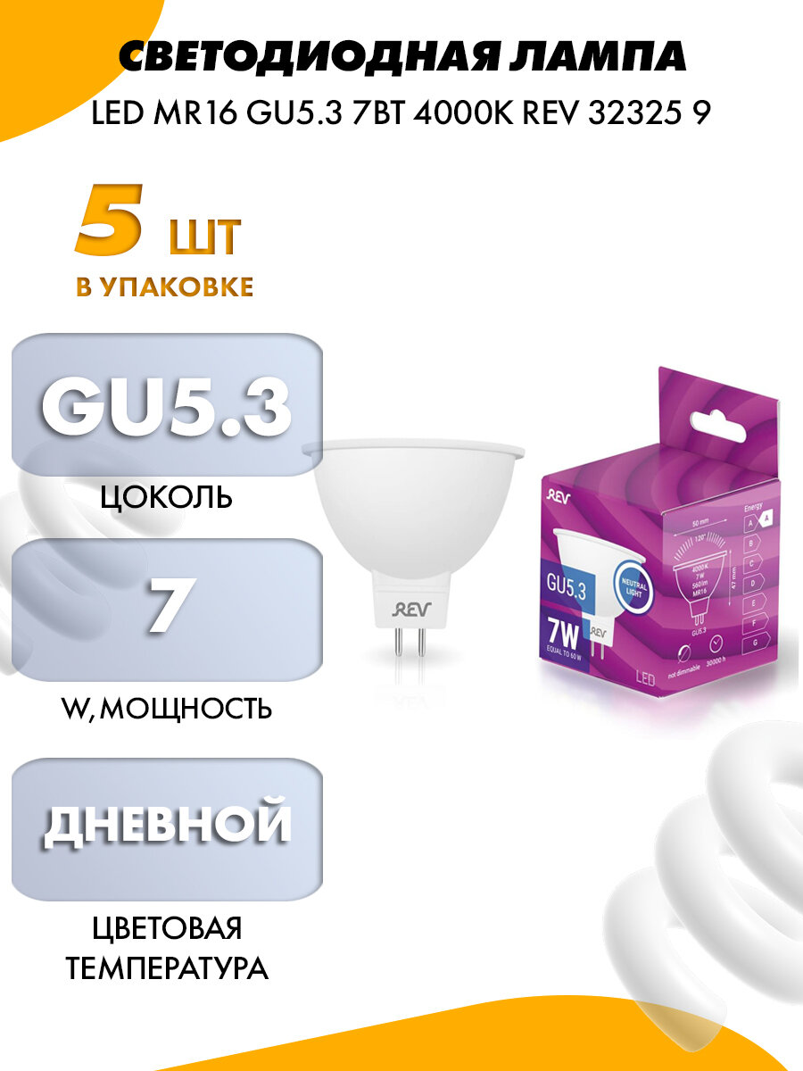 Лампа светодиодная REV MR16 7 Вт GU5.3 4000K 32325 9