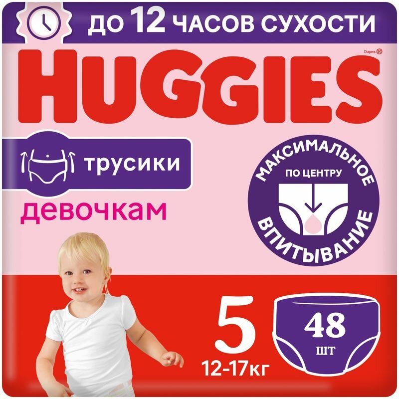 Трусики-подгузники Huggies 48шт 13-17кг 5 для девочек интересное: