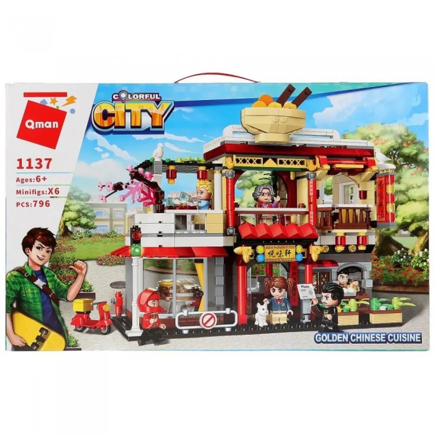 Купить Конструктор Qman City 1137 Торговый центр с фигурками, 796 деталей. Китайский ресторан, Enlighten Brick