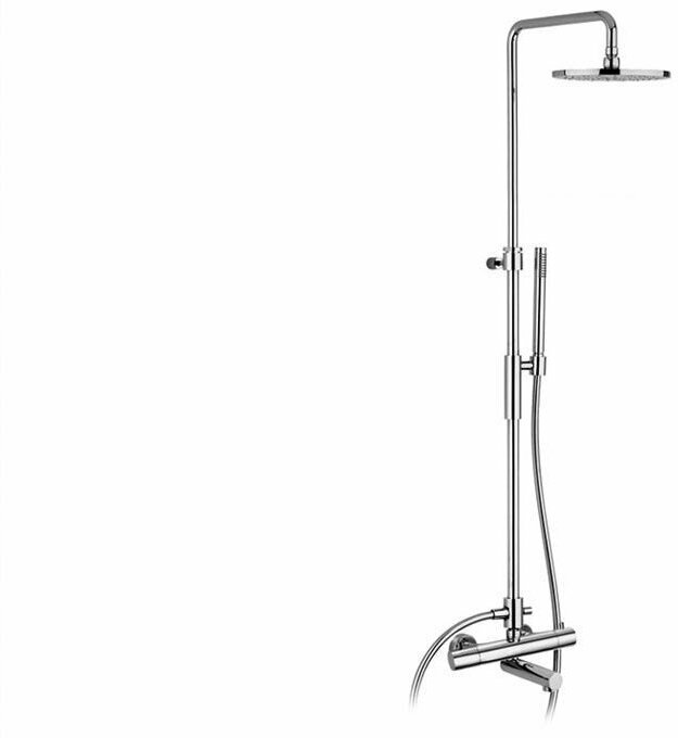 Купить Колонна латунная BIRILLO термостат с изливом,регулируемая, верх.душ MASTER диам.225мм металл, руч. Душ Master из металла , шланг PVC 1500мм, держатель душа круглый подвижный и поворотный, цвет хром ZCOL721LIQCR
