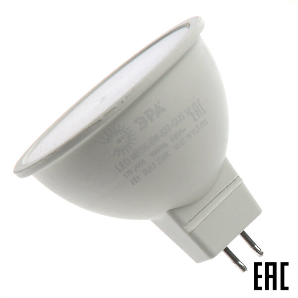 ЭРА Лампа светодиодная ЭРА GU5.3 6W 4000K матовая LED MR16-6W-840-GU5.3 Б0020545