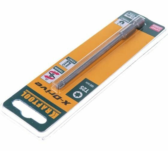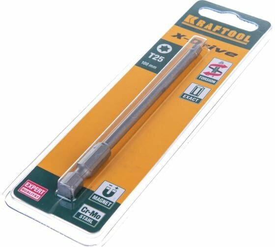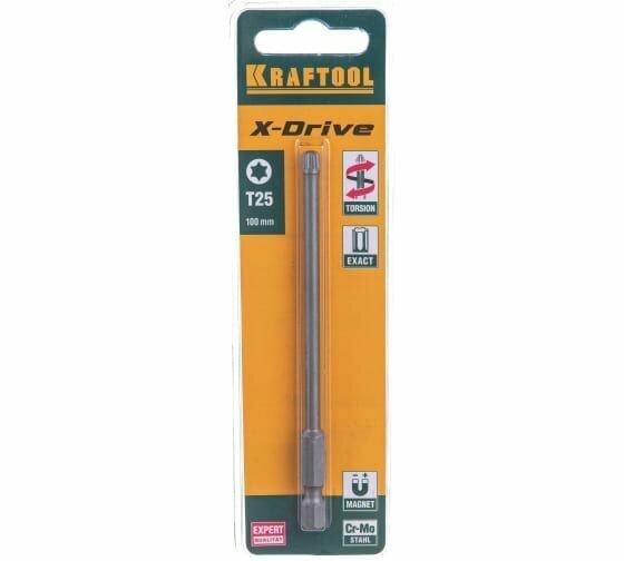 KRAFTOOL Биты "X-DRIVE" торсионные кованые, обточенные, KRAFTOOL 26125-25-100-1, Cr-Mo сталь, тип хвостовика E 1/4", Т25, 100мм, 1шт, ( 26125-25-100-1 )