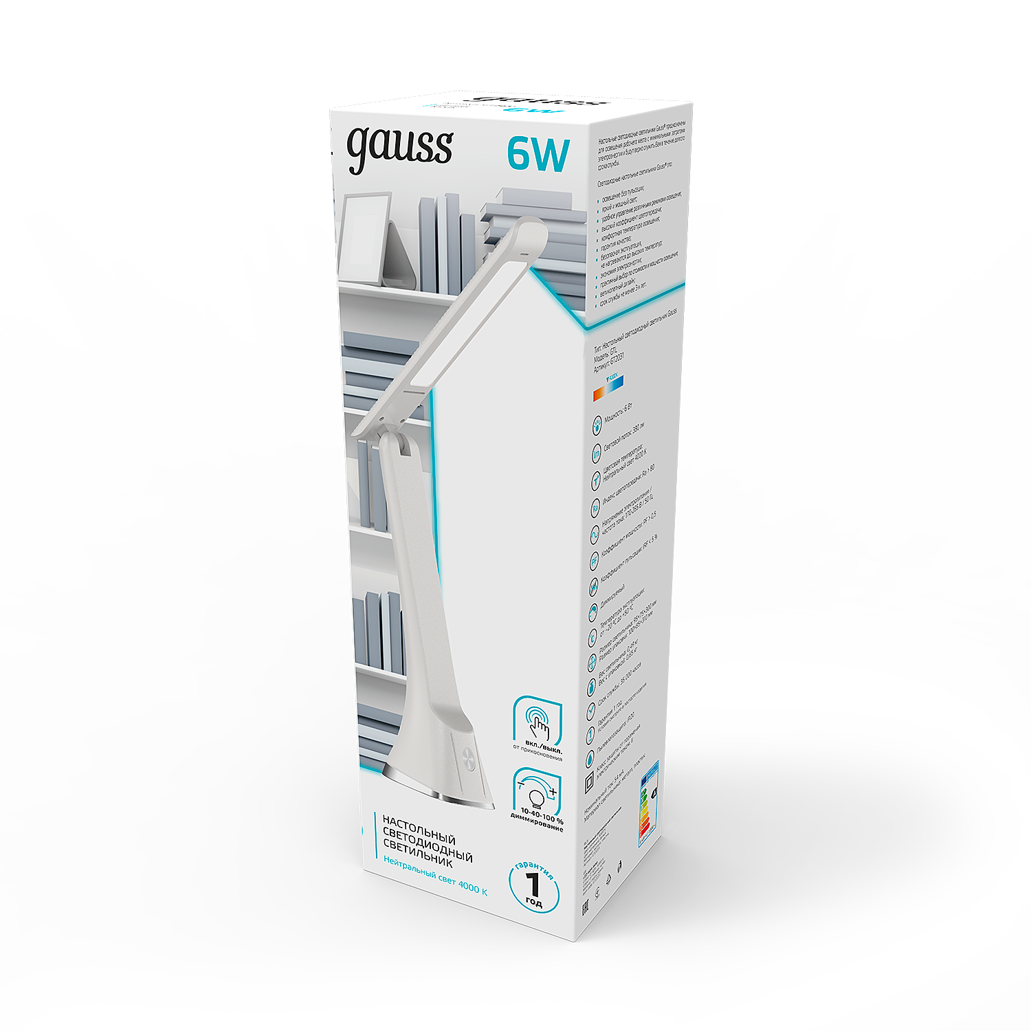 Светильник настольный Gauss модель GTL203 6W 380lm 4000K 170-265V белый диммируемый LED 1/20