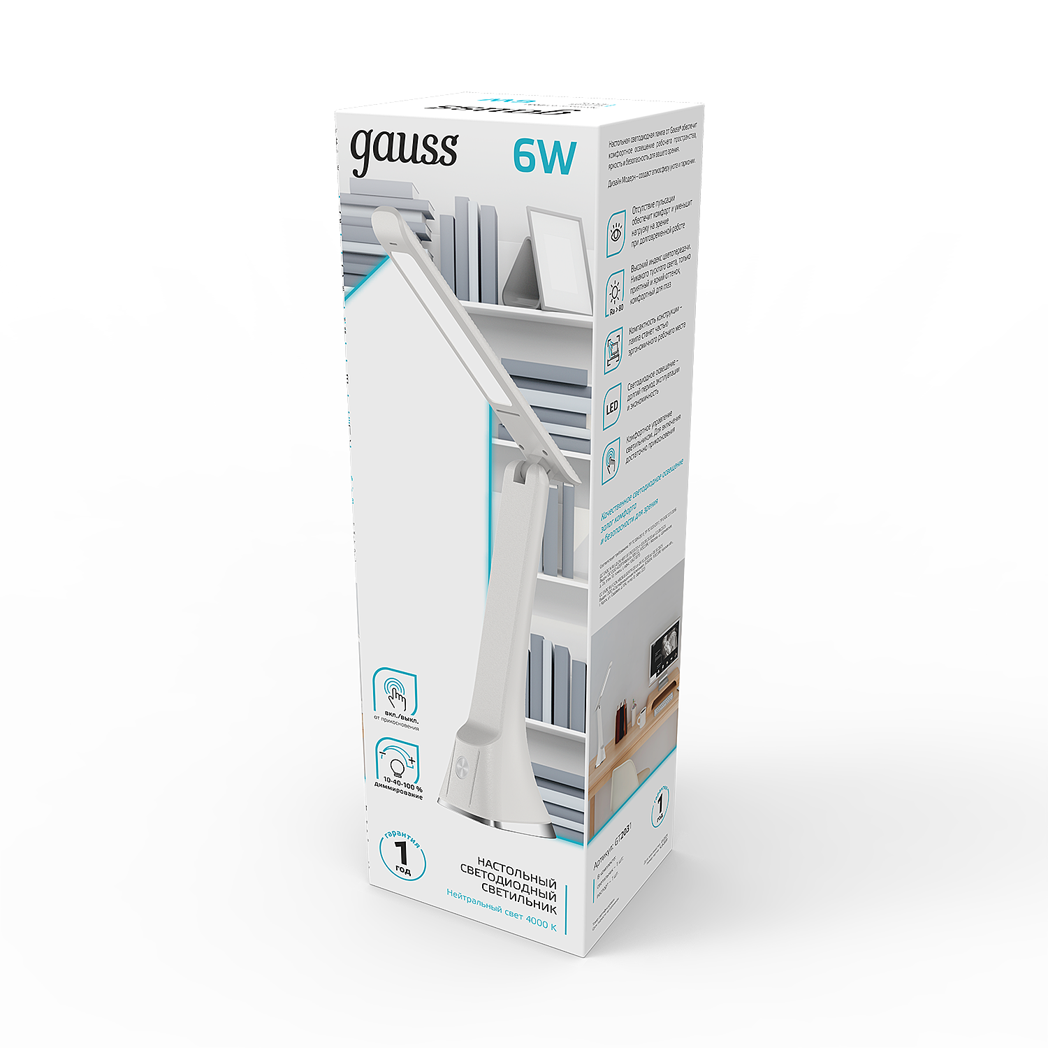 Настольная лампа Gauss GTL203 6W 380lm 4000K 170-265V белый диммируемый LED 1/20
