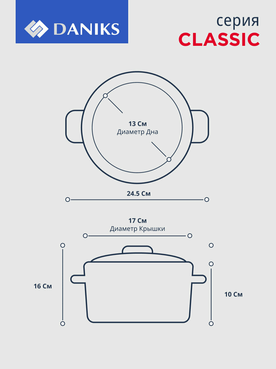 Кастрюля Daniks Классика, 2.9 л, диаметр 18 см