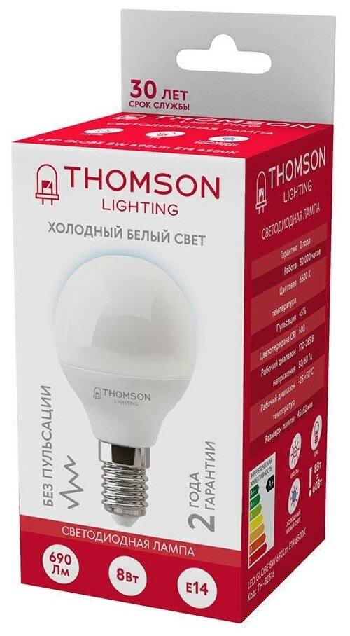 Лампа LED Thomson E14, шар, 8Вт, TH-B2316, одна шт. интересное: