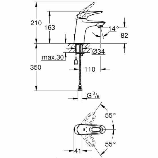 Смеситель Grohe Eurostyle 23707003 для раковины с донным клапаном