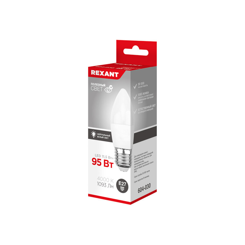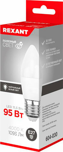 Rexant 604-030 Лампа светодиодная Свеча CN 11,5 Вт E27 1093 лм 4000 K нейтральный свет