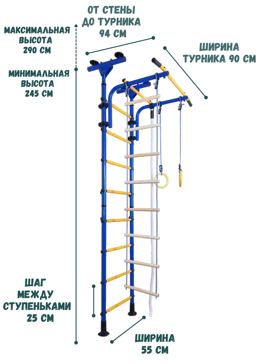 Шведская стенка Юный Атлет Пол-потолок (синий/желтый)