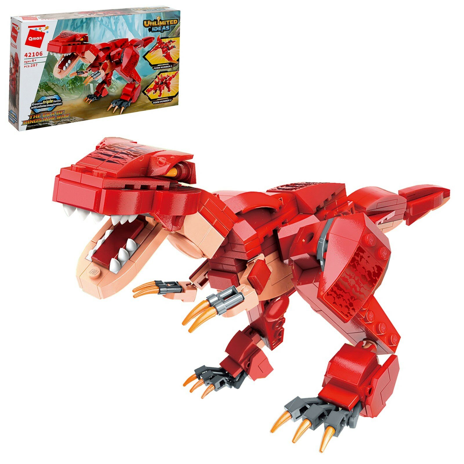 Конструктор трансформер пластиковый "Красный динозавр" 3 в 1 287 деталей Qman 42106