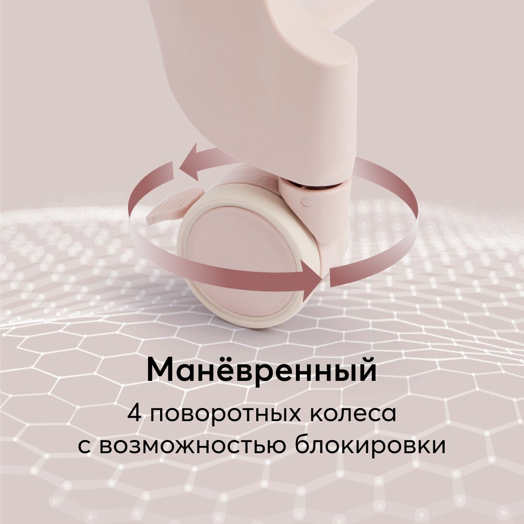 Стульчик для кормления Happy Baby Berny Lux до 25 кг, шезлонг, 4 повротных колеса, розовый