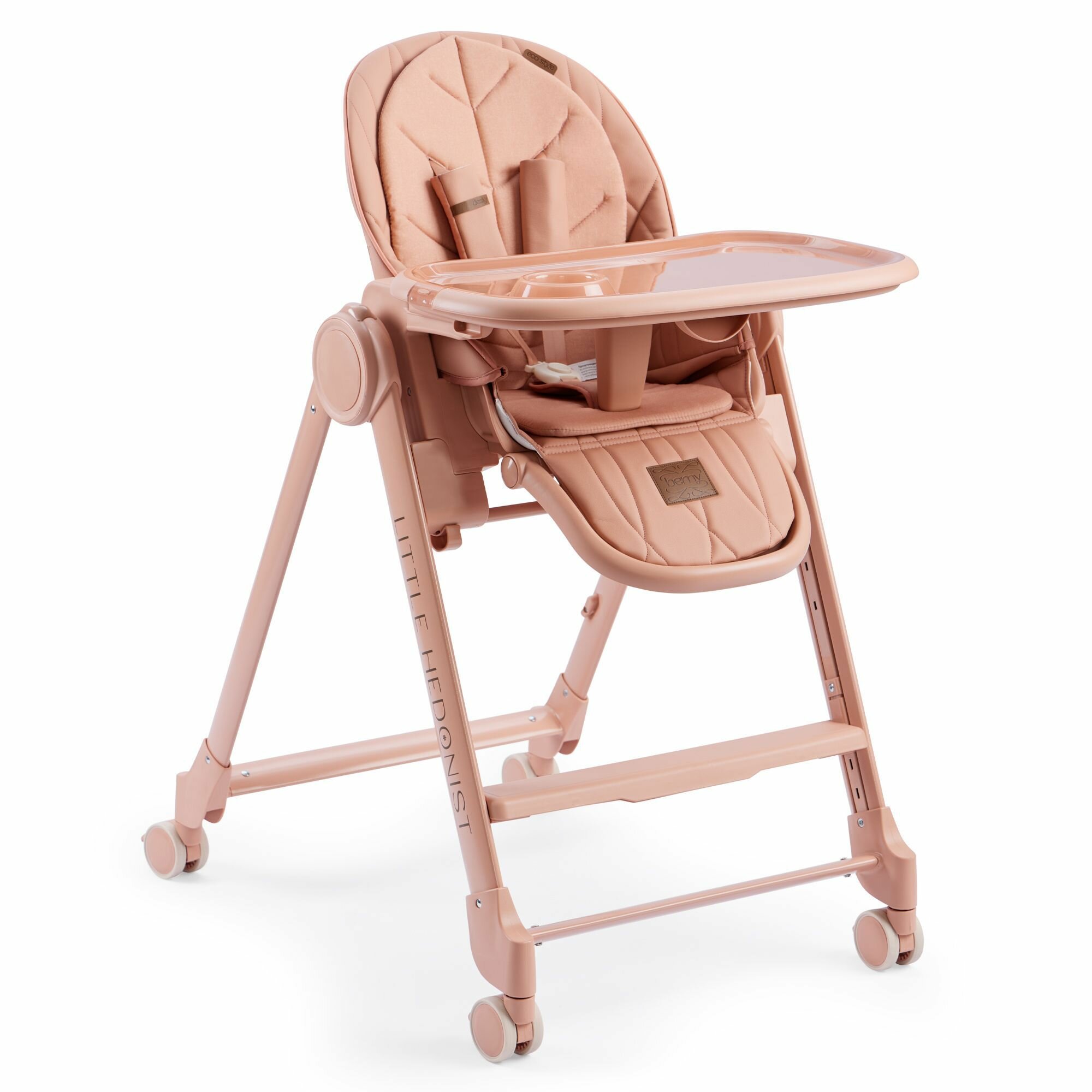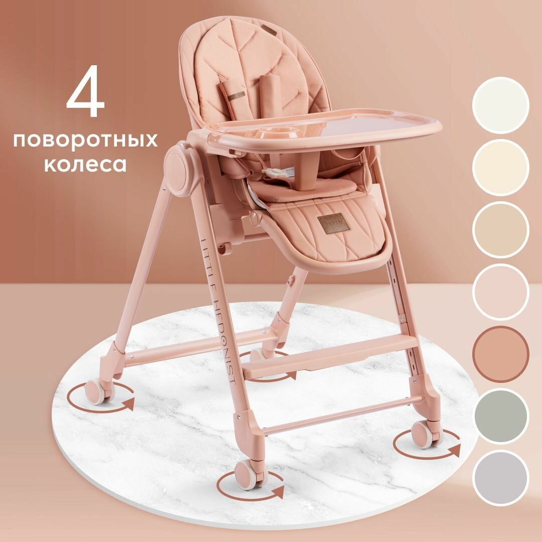 Стульчик для кормления Happy Baby Berny Lux до 25 кг, шезлонг, 4 повротных колеса, розовый