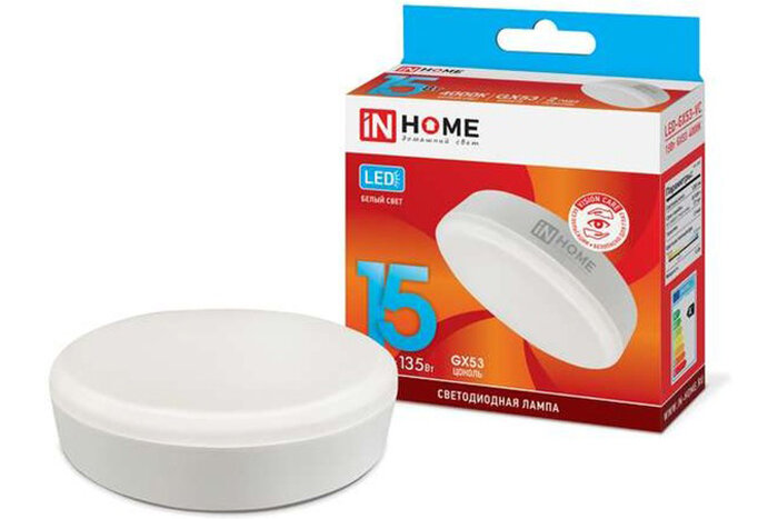 (1 шт.) Светодиодная лампочка LED-GX53-VC15Вт 230В 4000К 1200Лм IN HOME