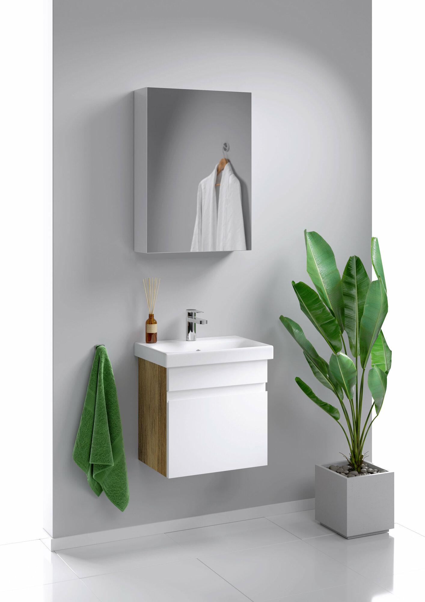 Тумба под раковину Aqwella Smart 50 см, фасад белый, корпус дуб балтийский SRT0105DB